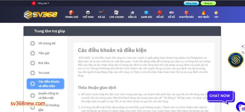 Chính sách điều khoản điều kiện tại nhà cái SV368
